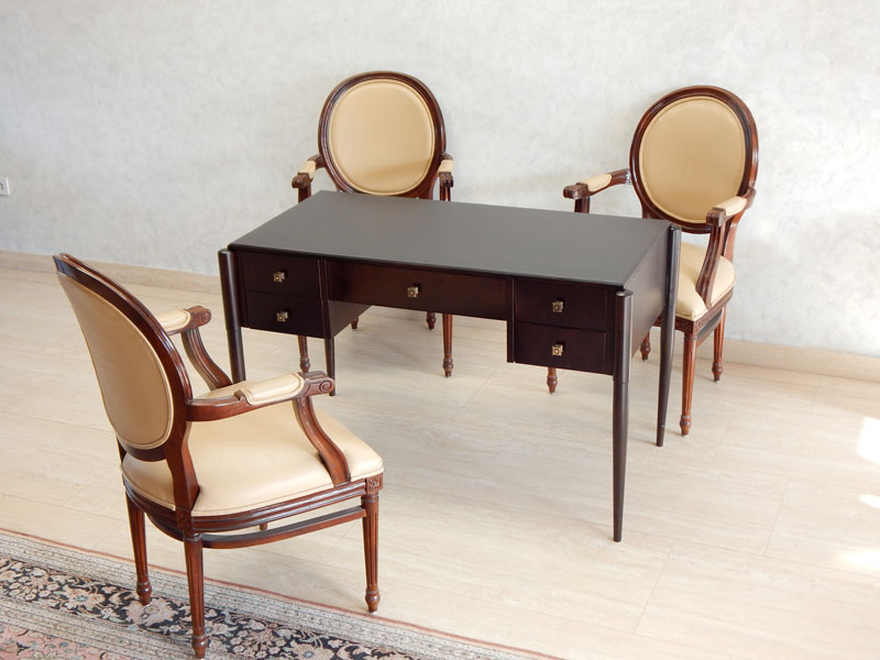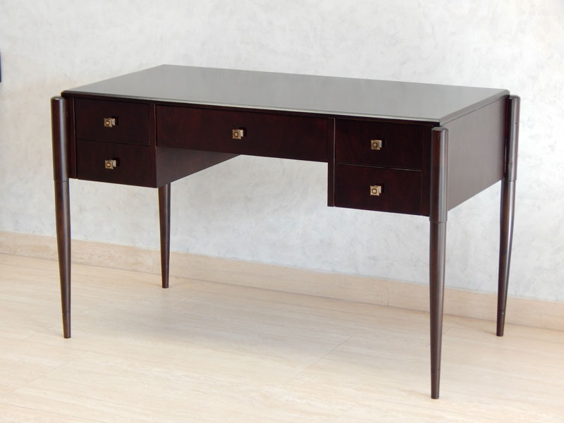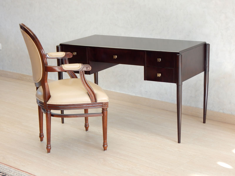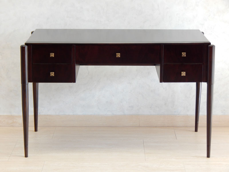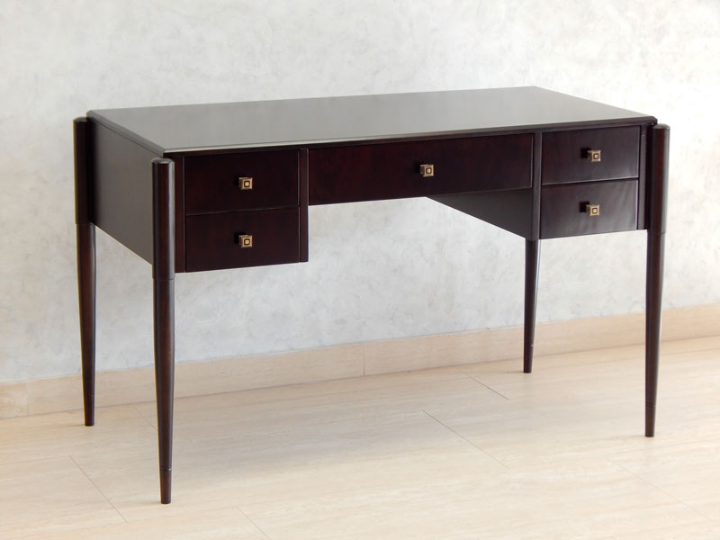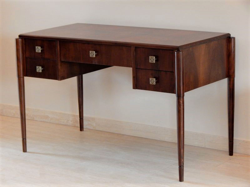 Art Deco íróasztal [A-03] Art Deco íróasztal [A-03] Ára: 345 000 Ft Diófa vagy mahagóni borítással, esztergált lábakkal, 5 db fiókkal.Méret: 120 x 60 cm magassága: 77 cmA méret és formaváltozás 10 – 30 % felárat jelent. Vissza