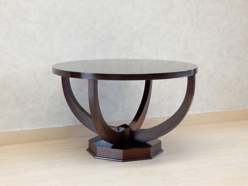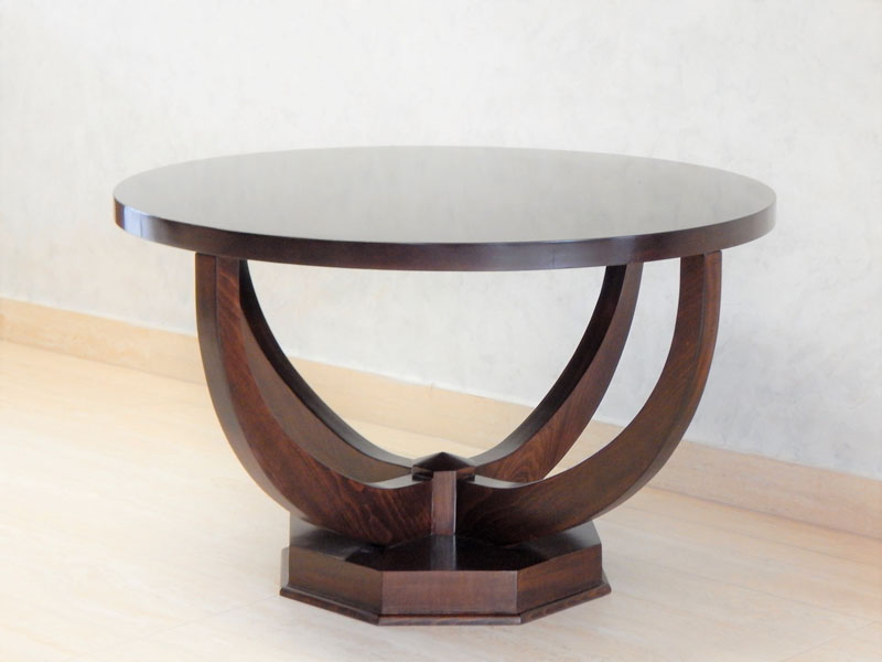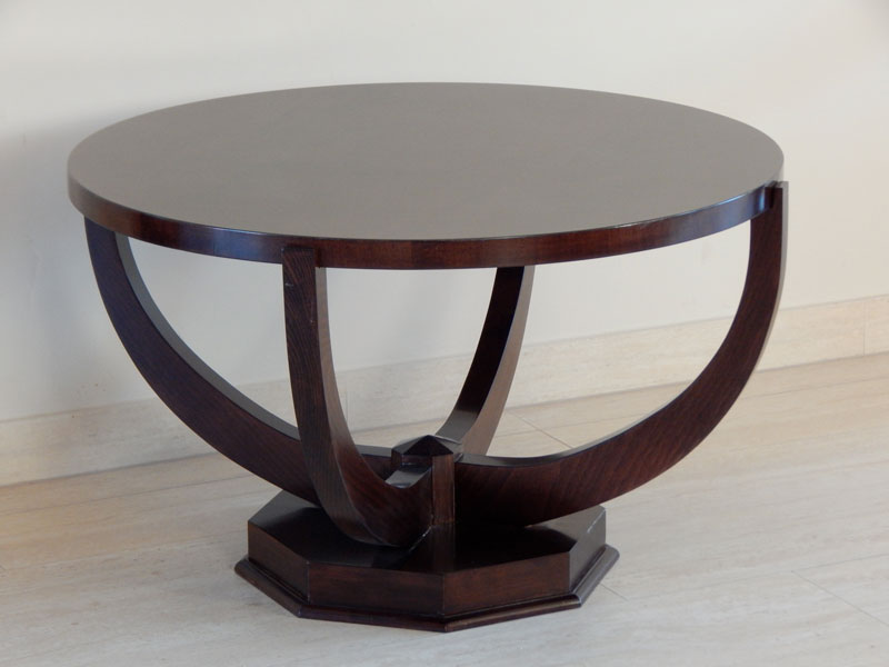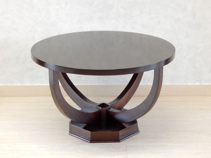 Art Deco kerek dohányzóasztal [B-36] Art Deco kerek dohányzóasztal [B-36] Ára: 265 000 Ft Diófa, mahagóni vagy paliszander borítással,íves keményfa lábakkal.Mérete: tető 85 cm, magassága: 55 cm.A méret és formaváltozás 10 – 30 % felárat jelent. Házhozszállítás az ország egész területén! Vissza