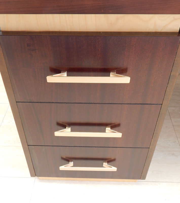 Dió, mahagóni vagy paliszander borítással. Talapzat és a felsőrész világos juhar.