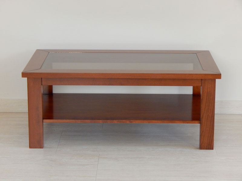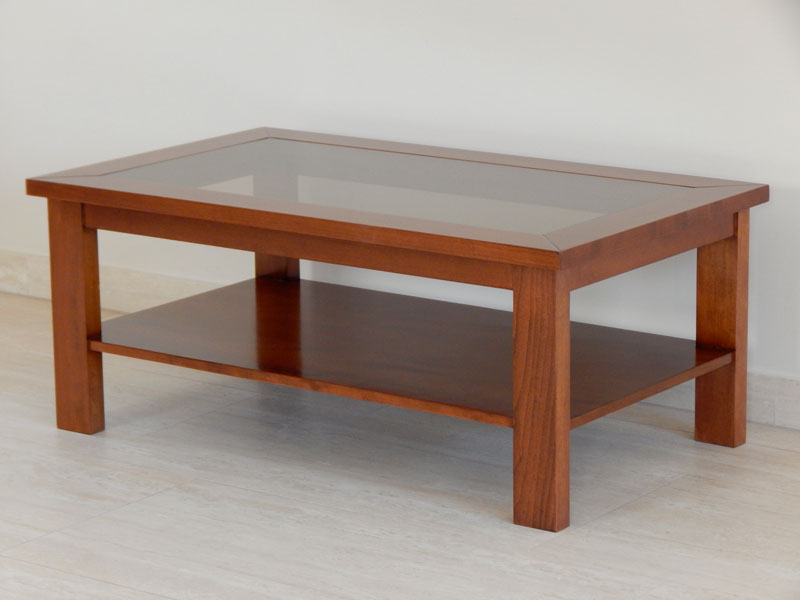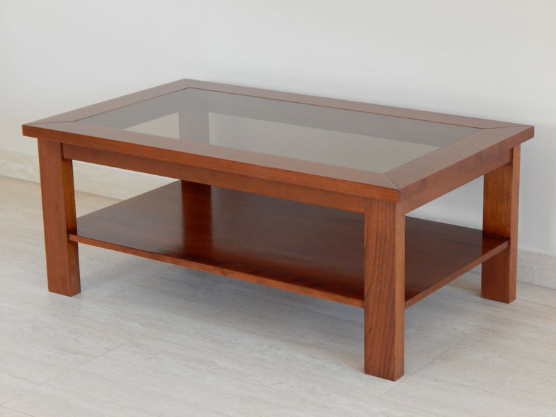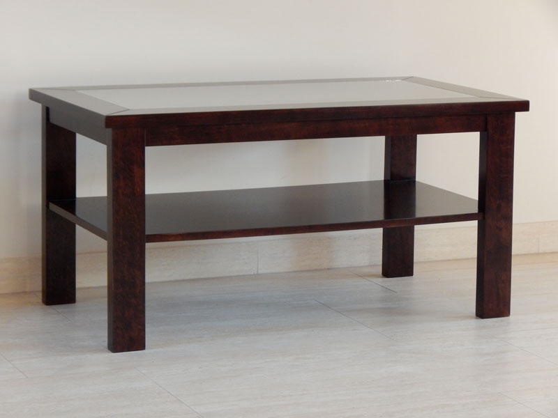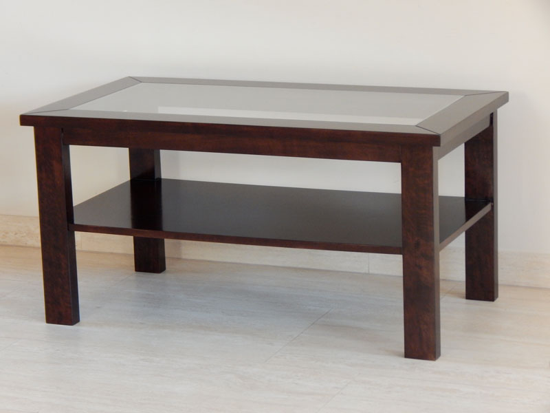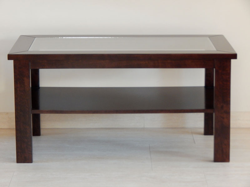Diófa, mahagóni vagy paliszander borítással, átlátszó vagy bronz barna 5-mm es üvegtetővel, alul 1 db. polccal. Mérete: 110 x 65 cm, magassága: 45 cm. A méret és formaváltozás 10 – 30 % felárat jelent.