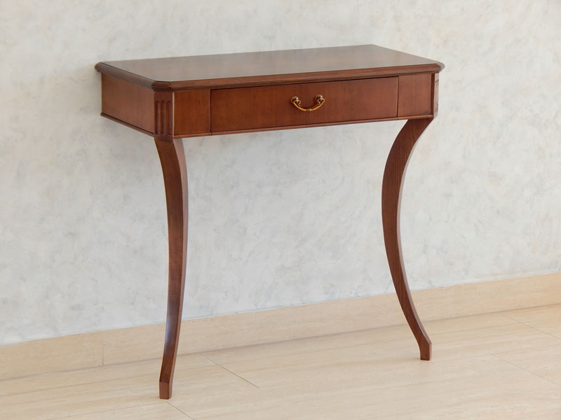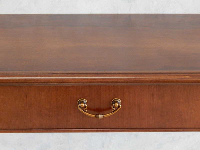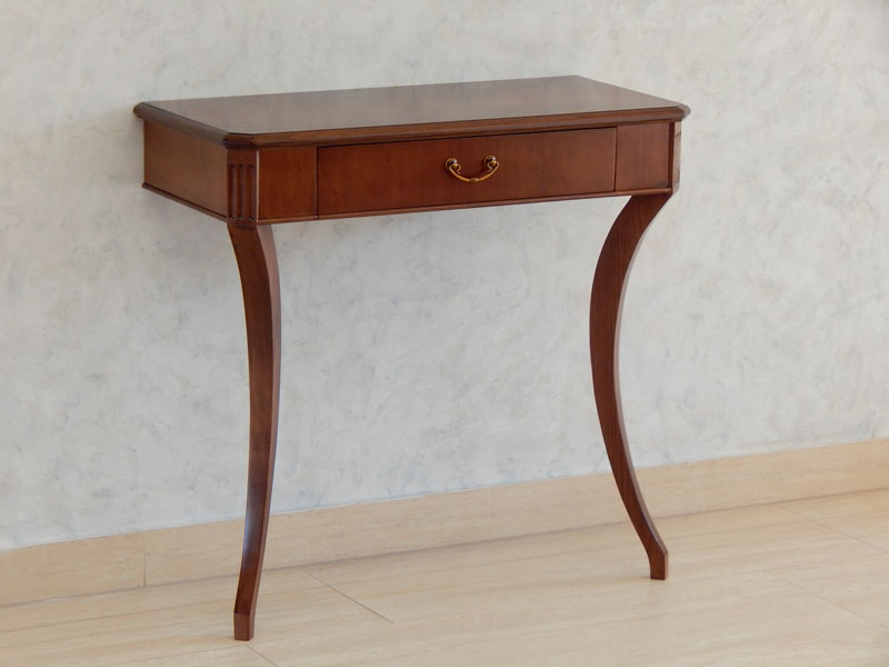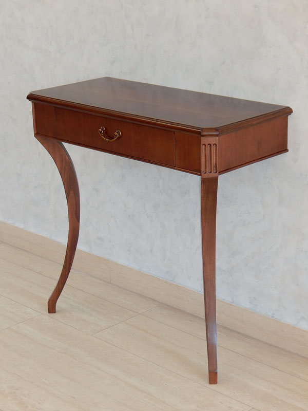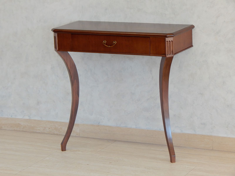 Biedermeier konzolasztal [B-02] Biedermeier konzolasztal [B-02] Ára: 165 000 Ft Diófa borítással, hajlított diófa lábakkal, 1 db fiókkal.Méret: 78 x 36 cm, magasság: 75 cmA méret és formaváltozás 10 – 30 % felárat jelent. Vissza