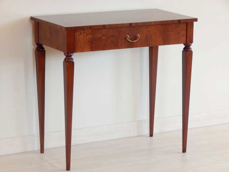 Copf stilusú íróasztal – laptopasztal [A-08] Copf stilusú íróasztal – laptopasztal [A-08] Ára: 185 000 Ft Diófa vagy cseresznyefa borítással,felülről keskenyedő klasszicista lábakkal,1 db fiókkal.Mérete: 85 x 55 cm. magassága: 77 cm.A méret és formaváltozás 10 – 30 % felárat jelent! Vissza