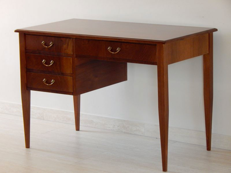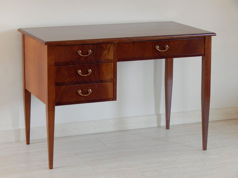 Diófa vagy cseresznyefa borítással. klasszicista stílusú lábakkal, 4 db fiókkal.