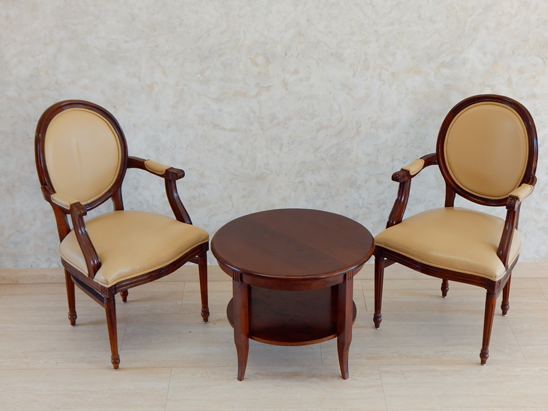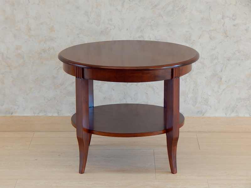 Klasszicista stílusú asztal [B-19] Klasszicista stílusú asztal [B-19] Ára: 185 000 Ft Diófa vagy cseresznyefa borítással, diófa lábakkal, 1 db alsó polccal.Mérete: tető átmérő: 70 cm, magasság: 55 cmA méret és formaváltozás 10 – 30 % felárat jelent. Házhozszállítás az ország egész területén! Vissza
