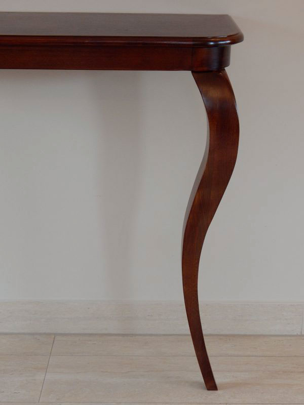 Konzolasztal kabriollábú [B-27] Konzolasztal kabriollábú [B-27] A méret ár: 95 000 Ft B méret ár: 115 000 Ft Dió, mahagóni vagy paliszander borítással, íves diófa lábakkal.(A) méret: 80 x 30 cm magasság: 77 cm(B) méret: 100 x 35 cm magasság: 77 cmA méret és formaváltozás 10 – 30 % felárat jelent Vissza