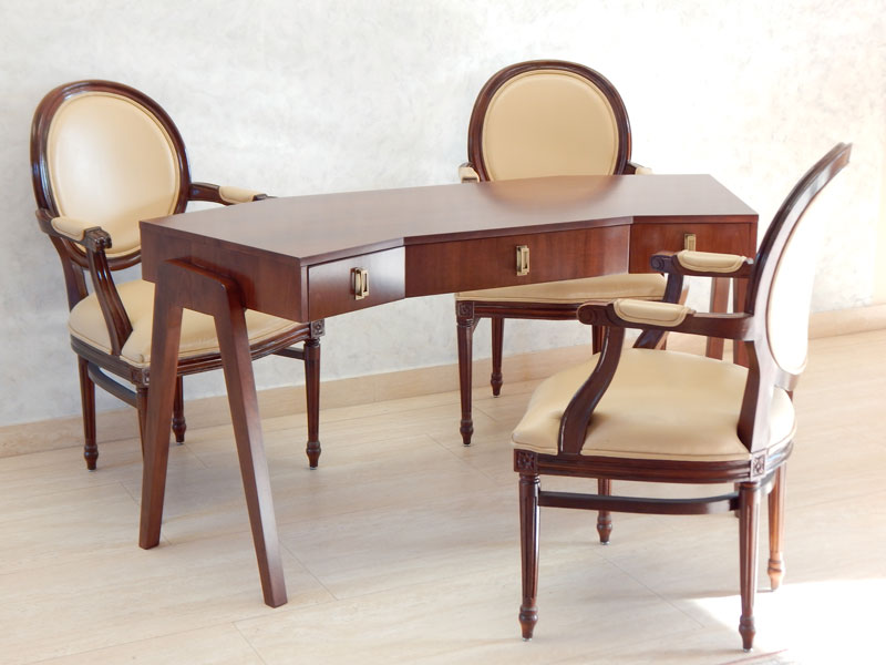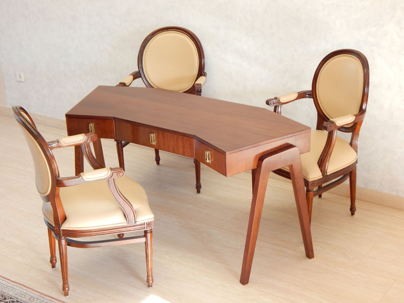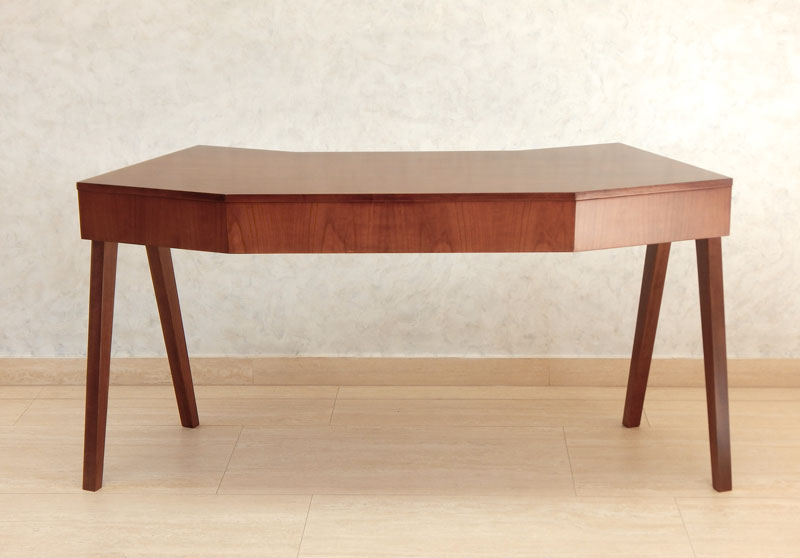 Modern nyolcszögletű íróasztal [A-29] Modern nyolcszögletű íróasztal [A-29] Ára: 365 000 Ft Diófa,mahagóni vagy paliszander borítással, diófa lábakkal, 3 db fiókkal.Mérete:155 x 55 cm, magassága: 77cm.A méret és formaváltozás 10 – 30 % felárat jelent. Vissza