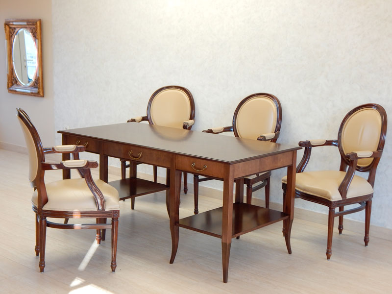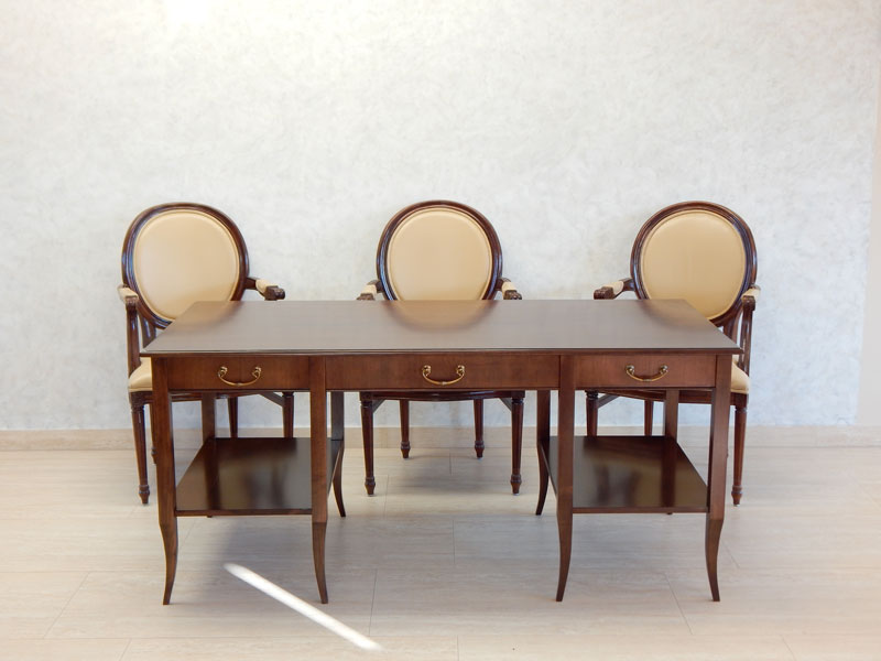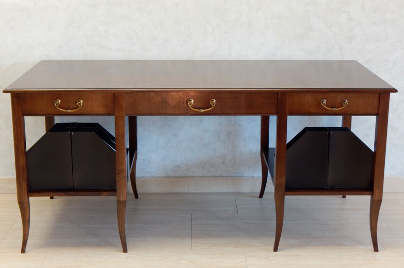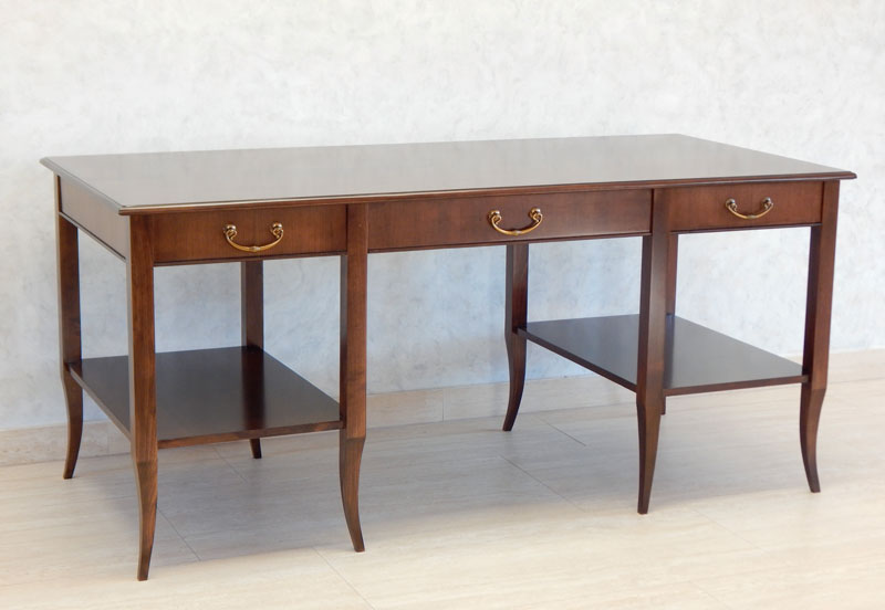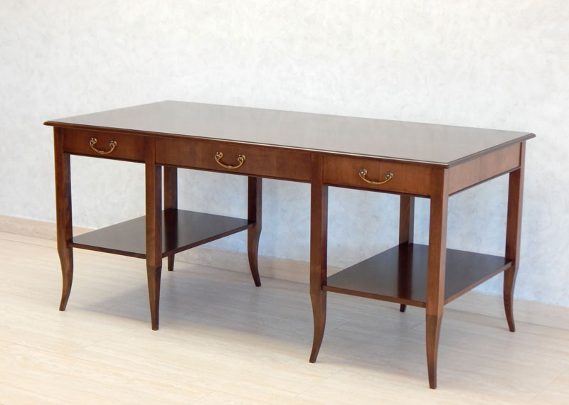 Nagyméretű irodai íróasztal [A-30] Nagyméretű irodai íróasztal [A-30] Ára: 495 000 Ft Nagyméretű irodai íróasztal, diófa, cseresznye, mahagóni borítással.Alul 2 x 12 db irattartóval, klasszicista stílusú lábakkal, 3 db fiókkal.Mérete: 170 x 80 cm, magassága: 77 cm.A méret és formaváltozás 10 – 30 % felárat jelent. Vissza