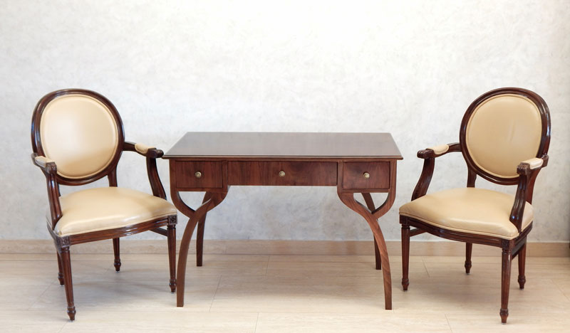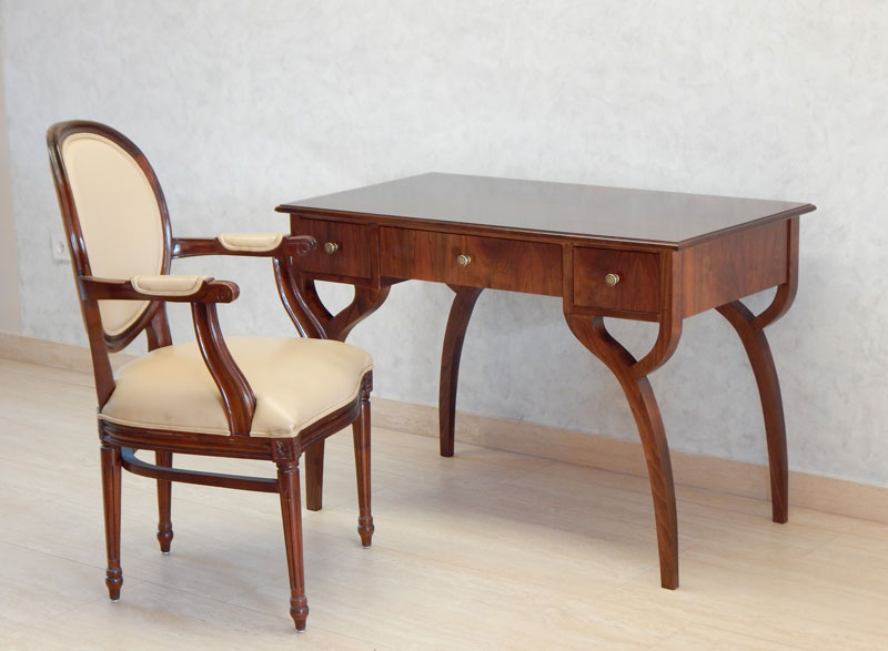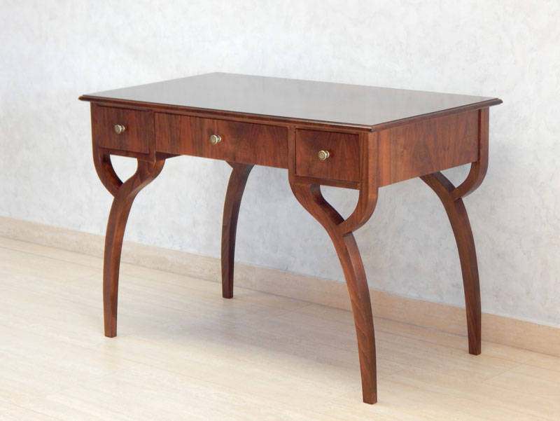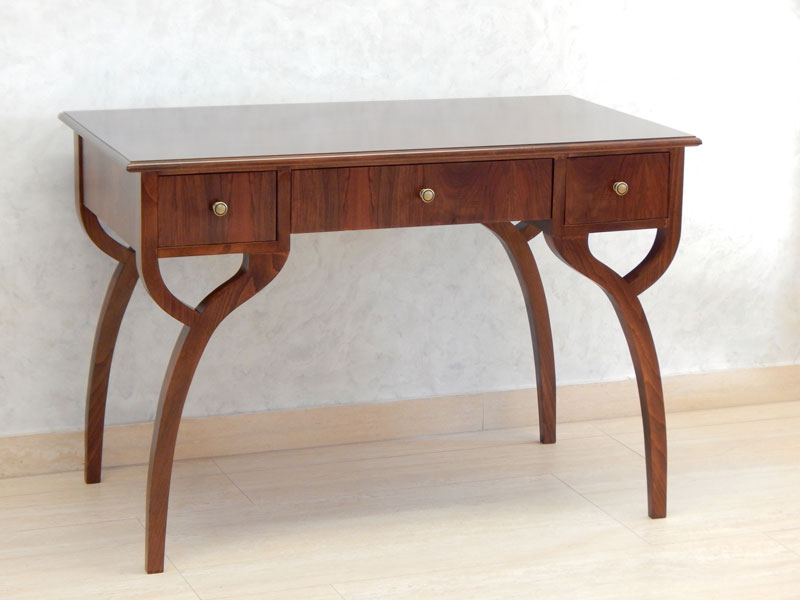Diófa vagy cseresznye fa borítással, diófa ívelt lábakkal, 3 db fiókkal.